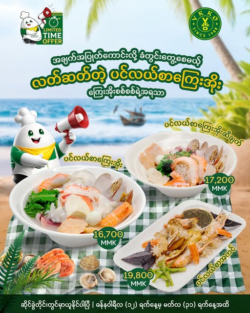 သာမန်ကြေးအိုးအရသာကနေ ပင်လယ်ရဲ့အငွေ့အသက်နဲ့ ပေါင်းစပ်ပြီး လတ်ဆတ်တဲ့ပင်လယ်စာကြေးအိုးဟာဆိုရင်𝐘𝐊𝐊𝐎 ဆိုင်ခွဲတွေမှာ ဇန်နဝါရီလ